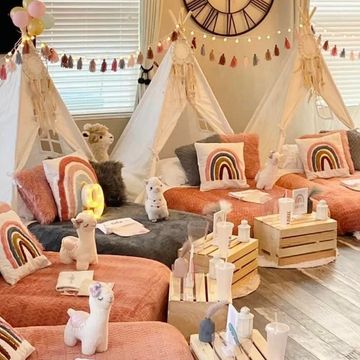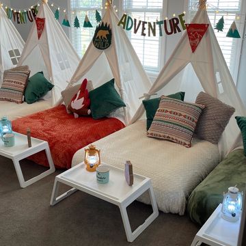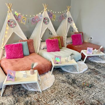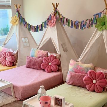 This option offers the same atmosphere of a sleepover party but instead of a mattress, the tent includes a fluffy rug.