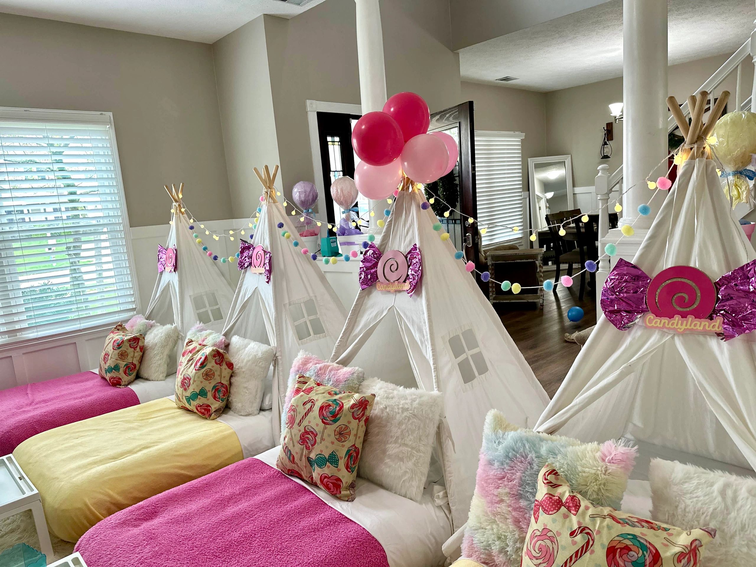Let us help take the stress out of planning the sleepover party you always dreamed of. We set up everything, leave it overnight and come back to pick it all up the following day. Easy as that! Unforgettable sleepover party experience!